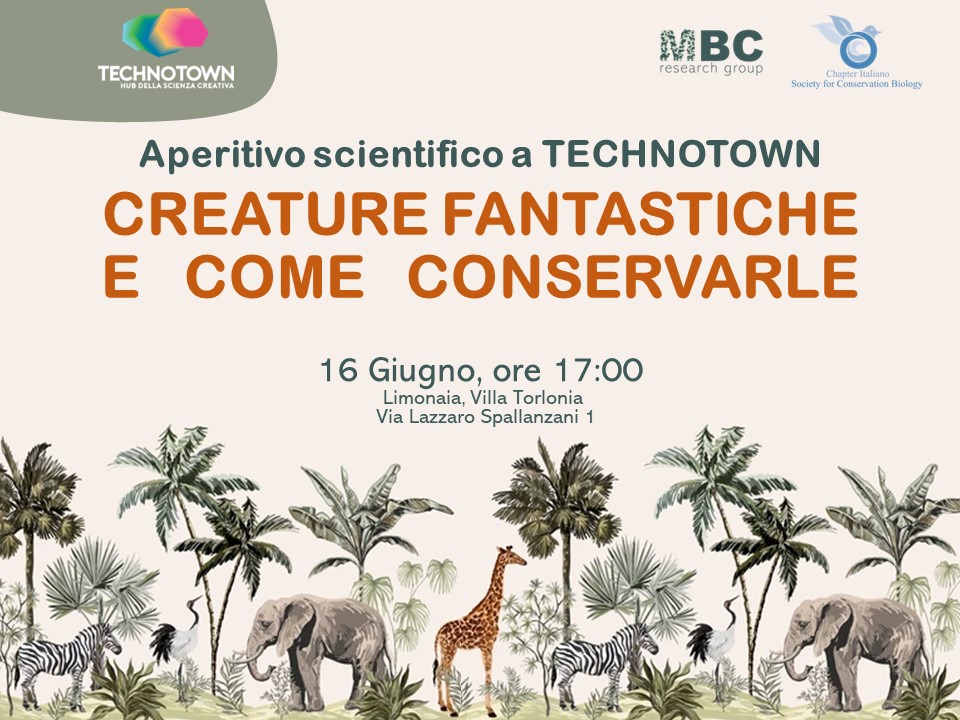 Il 16 Giugno dalle 17:00, presso la Limonaia a Villa Torlonia (Roma) si terrà l’aperitivo scientifico dal titolo “Creature fantastiche e come conservarle”. Un pomeriggio all’insegna della Biologia della Conservazione, organizzato dai giovani ricercatori del Macroecology and Biodiversity Conservation (MBC) research group, dell’Università Sapienza di Roma, in collaborazione con Technotown, hub della scienza creativa.
