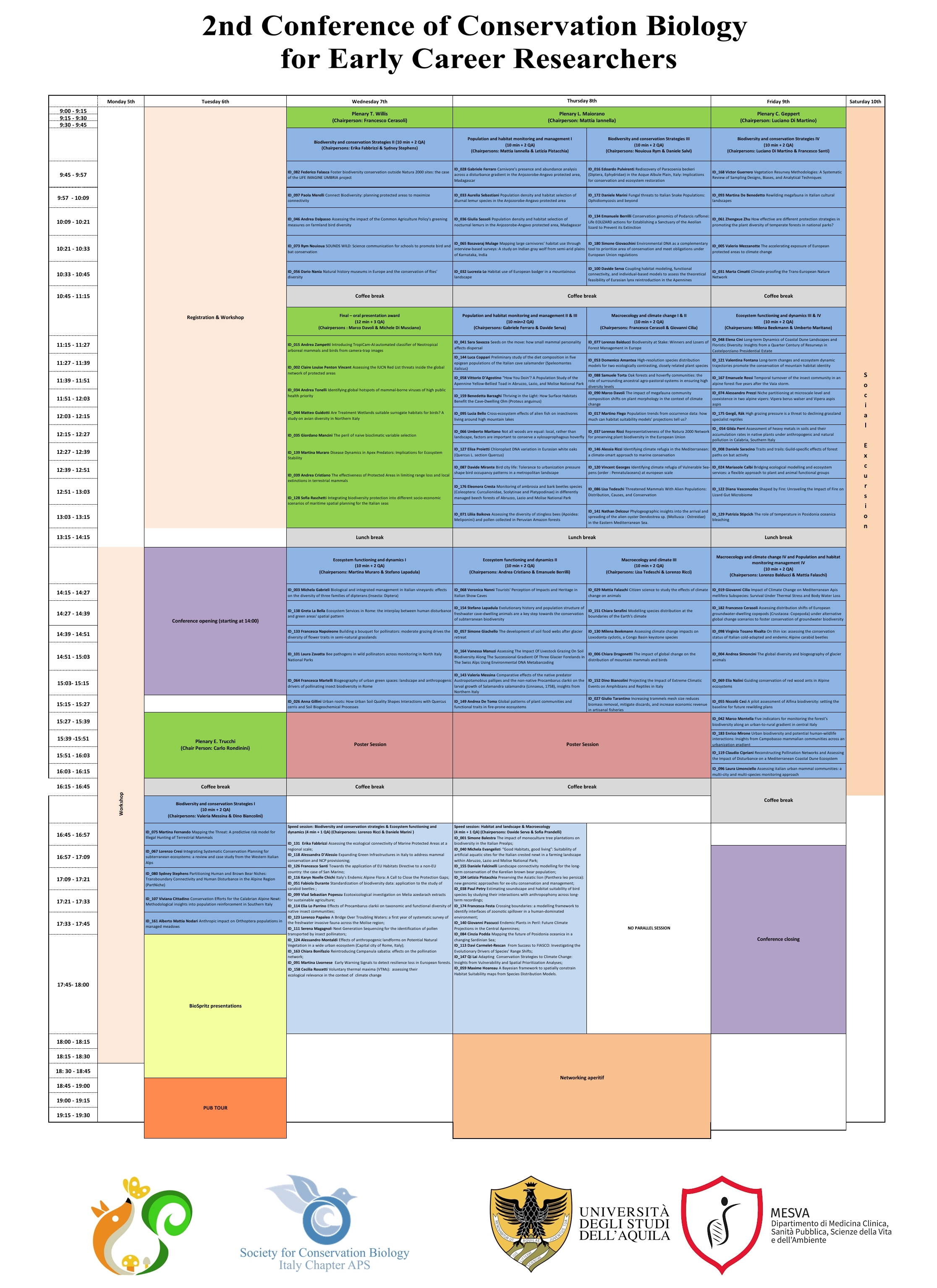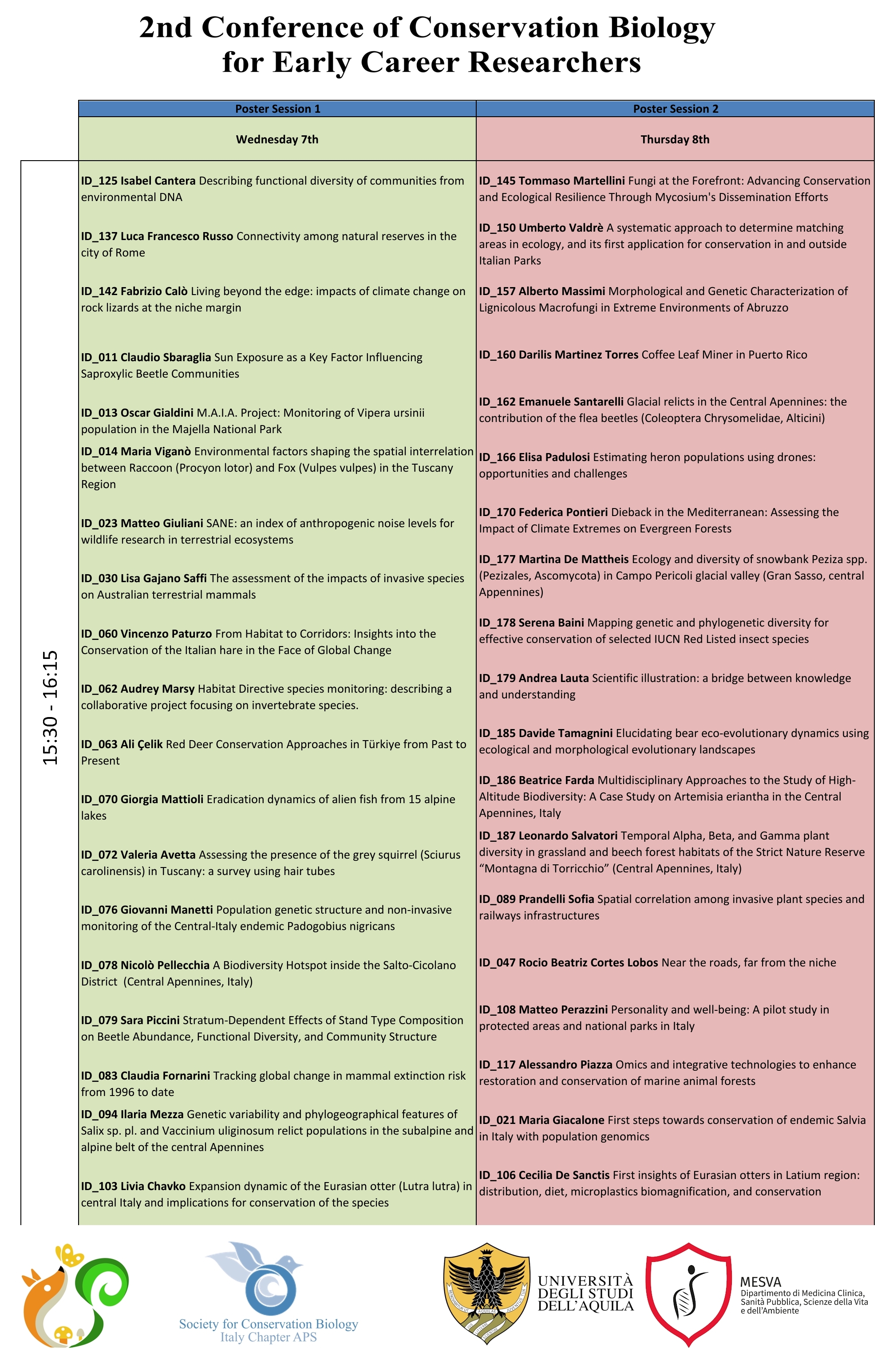 The Society for Conservation Biology Italy Chapter (SCB Italy), in collaboration with the University of L’Aquila, is pleased to present the second conference for Early Career Researchers (ECR), which will take place in L’Aquila from 6 to 9 May 2025.
